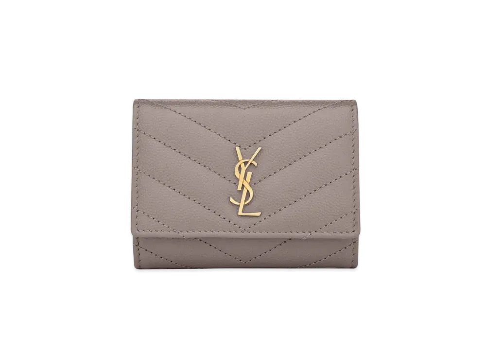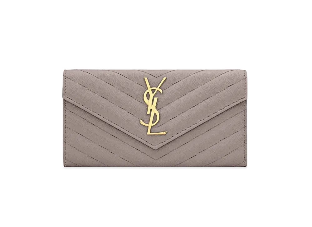 SAINT LAURENT Monogram Large Flap Wallet In Grain De Poudre Embossed Leather "Fog"