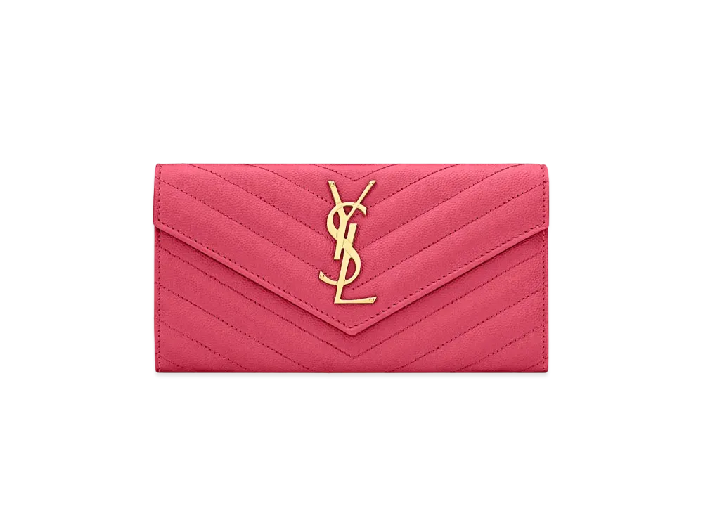 SAINT LAURENT Monogram Large Flap Wallet In Grain De Poudre Embossed Leather "Fuchsia"