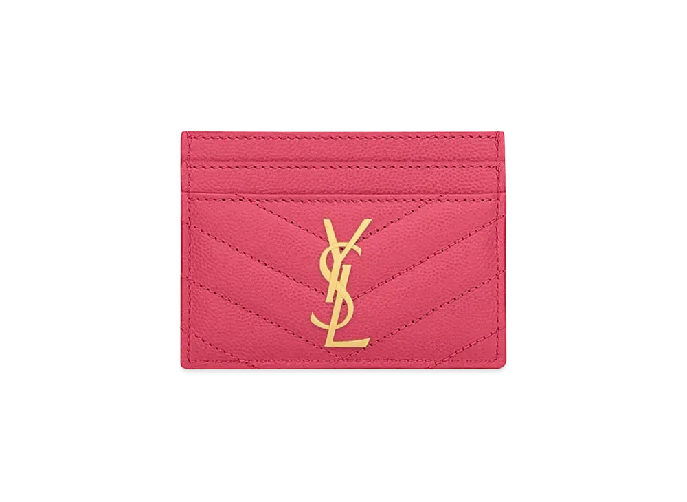 SAINT LAURENT Monogram Card Case In Grain De Poudre Embossed Leather "Fuchsia"