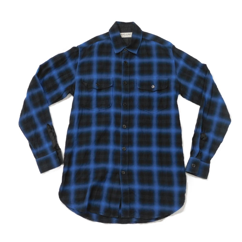 SAINT LAURENT PARIS サンローランパリ オンブレ チェック シャツ S ブラック 16AW エディ期 エディ スマリン コットン ブルー 長袖シャツ 392945 Y826L