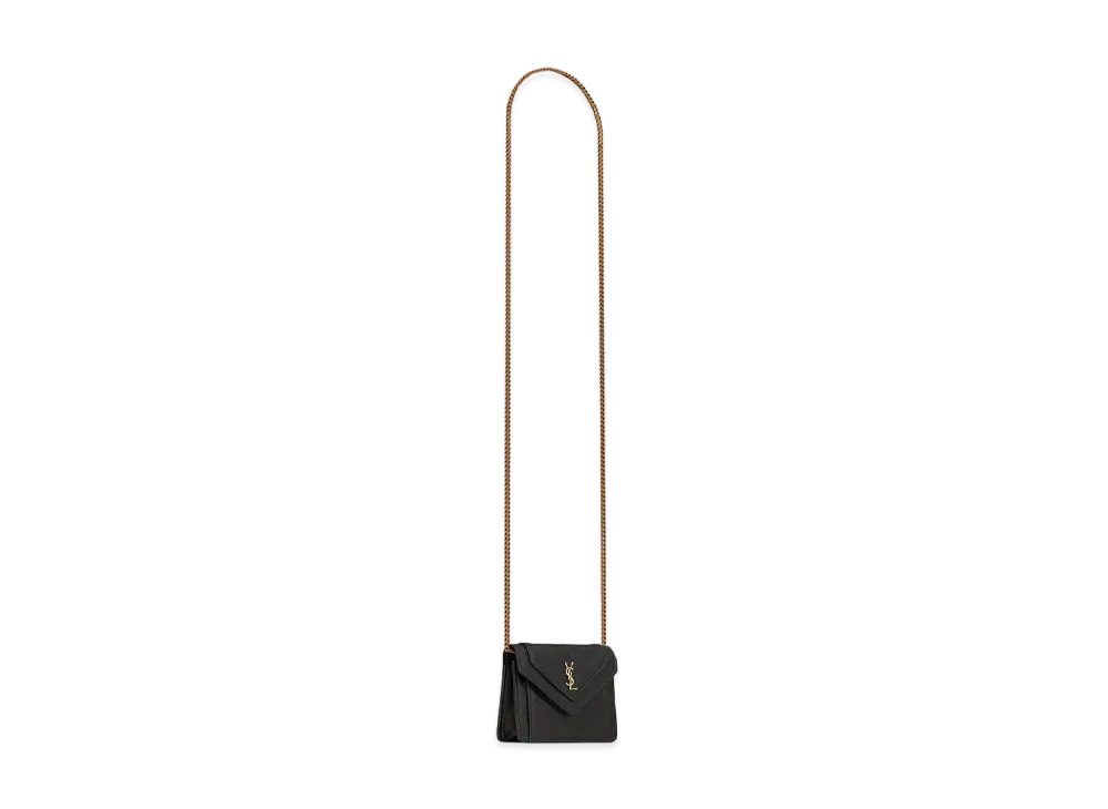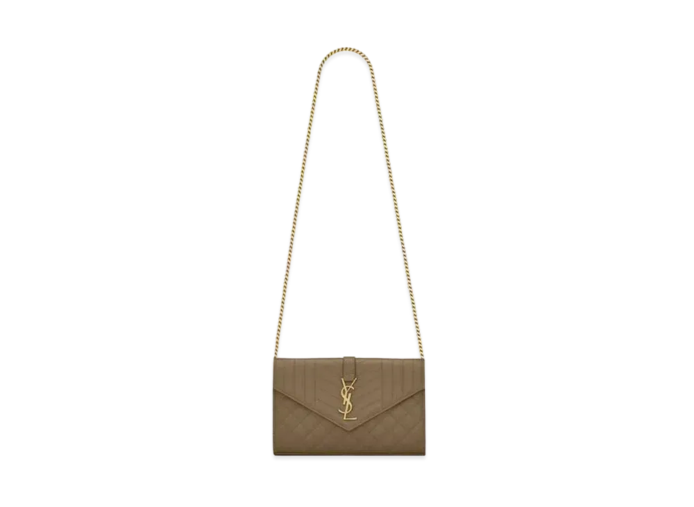 SAINT LAURENT Envelope Chain Wallet In Mix Matelasse Grain De Poudre Embossed Leather "Stone Gray"