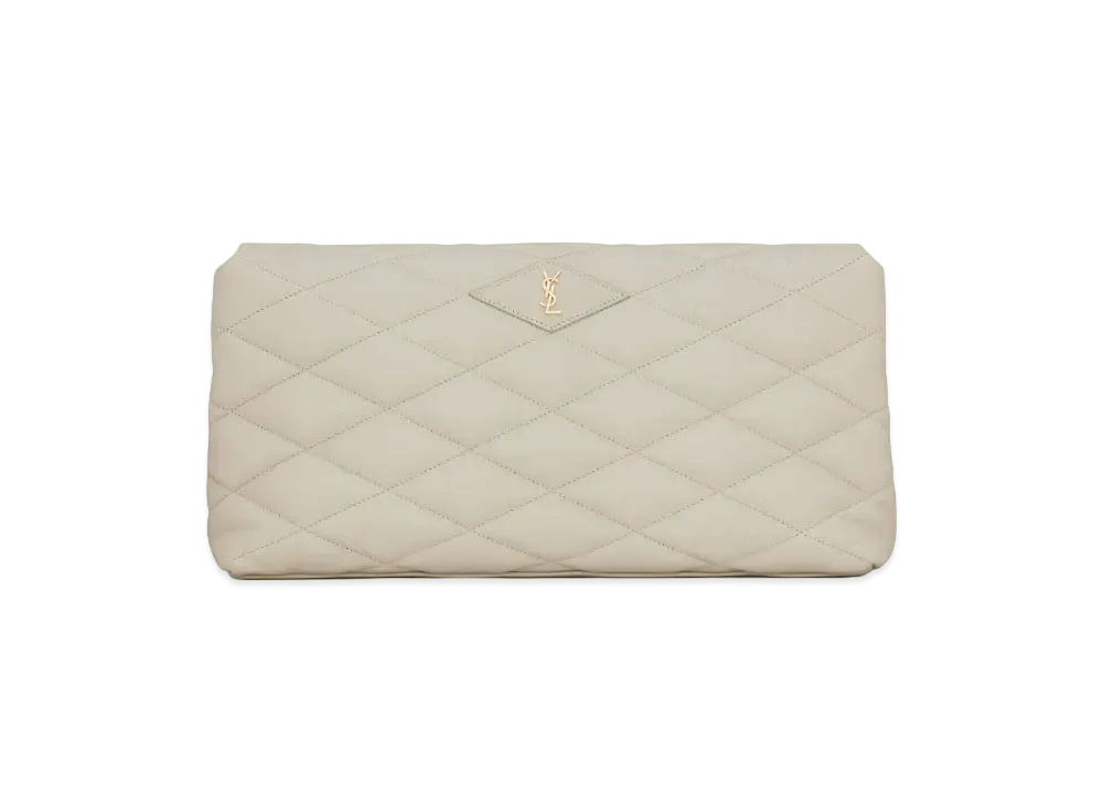 SAINT LAURENT Sade Puffer Envelope Clutch In Lambskin "Vintage White"