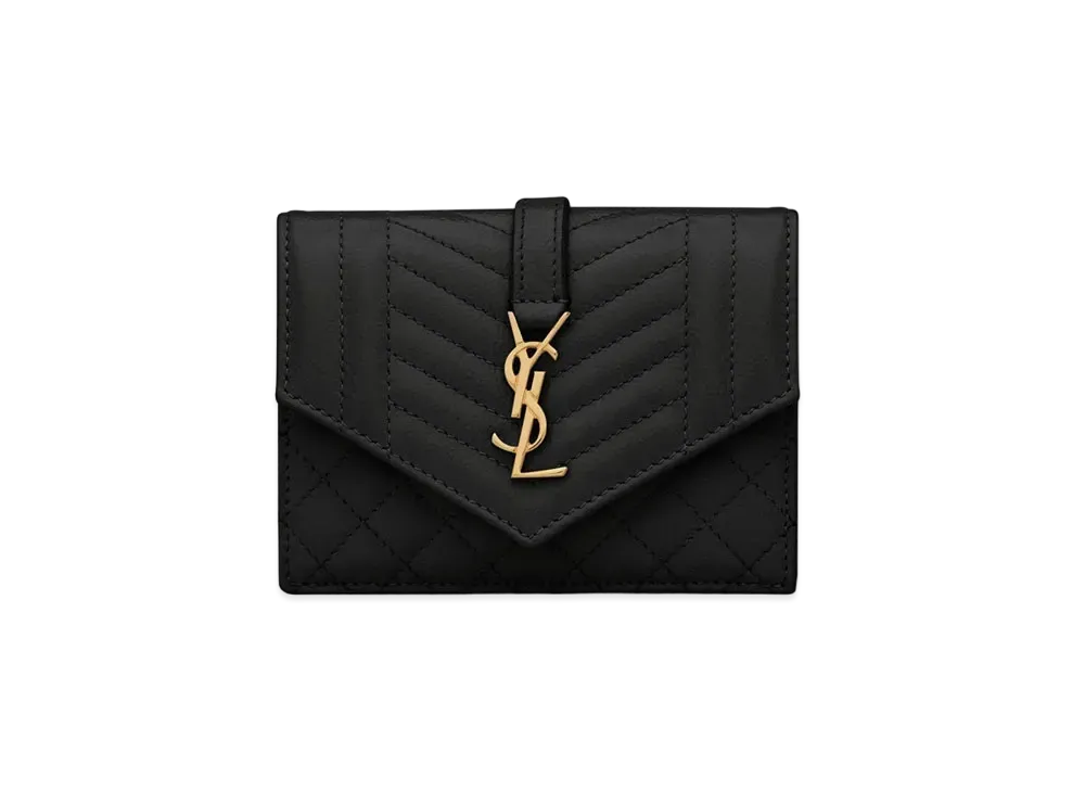 SAINT LAURENT Monogram Small Envelope Wallet In Mix Matelasse Grain De Poudre Embossed Leather "Dark Beige"