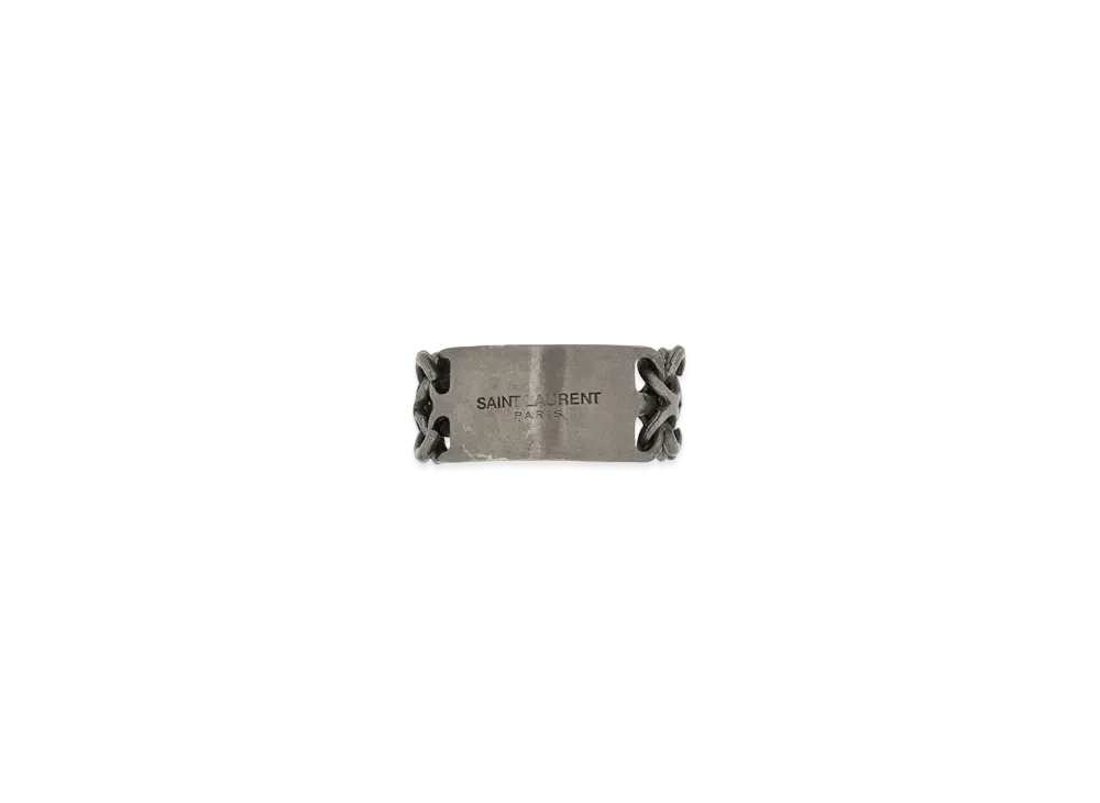 Saint Laurent ID Metal Plate Ring "Oxidized Silver"