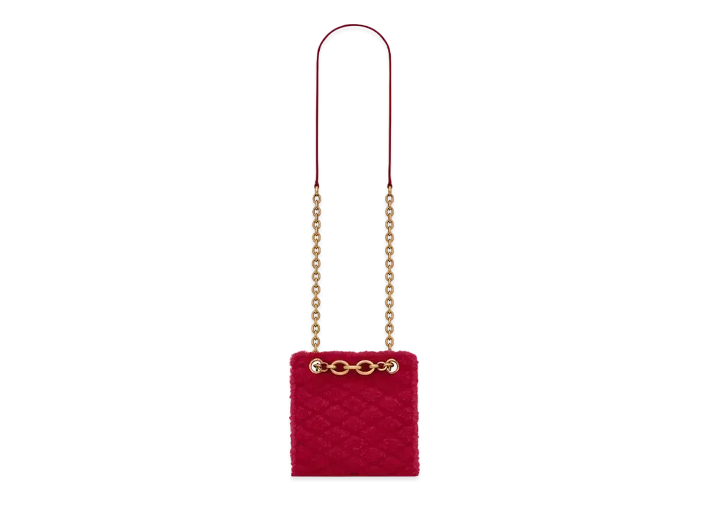 Saint Laurent Le Maillon Squared Chain Bag In Merino Shearling And Lambskin "Fuchsia"