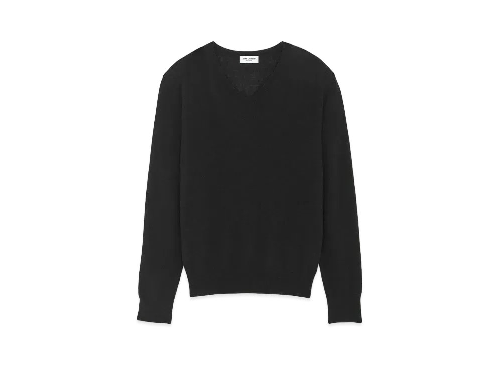 Saint Laurent Women's V-Neck Sweater in Cashmere and Silk "Black"