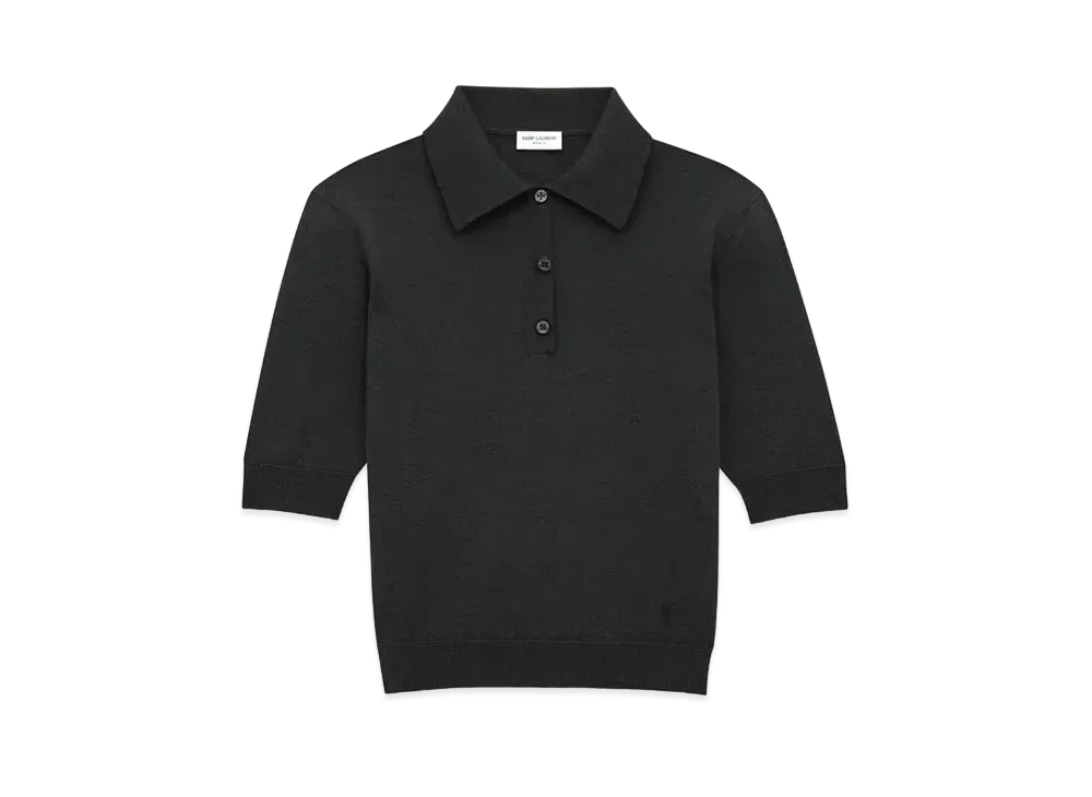 Saint Laurent Women's Polo Shirt Cassandre in Cashmere, Wool, and Silk "Black"