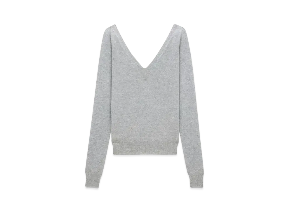 Saint Laurent Women's V-Neck Sweater in Cashmere "Gris Chine"
