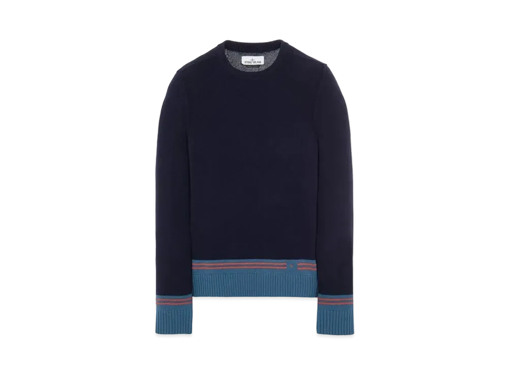 Stone Island 573B8 LAMBSWOOL WITH STRIPED MOTIF AND EMBROIDERY "Blue"