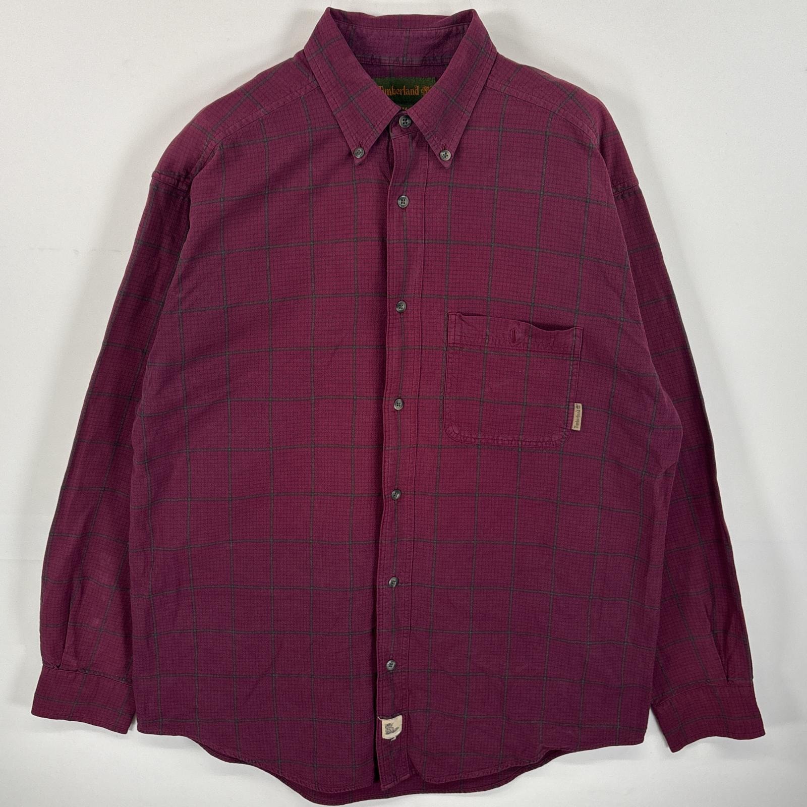 古着 ティンバーランド Timberland 長袖シャツ ワンポイント ロゴ ボタンダウンシャツ 胸ポケ M レッド系 チェック メンズ