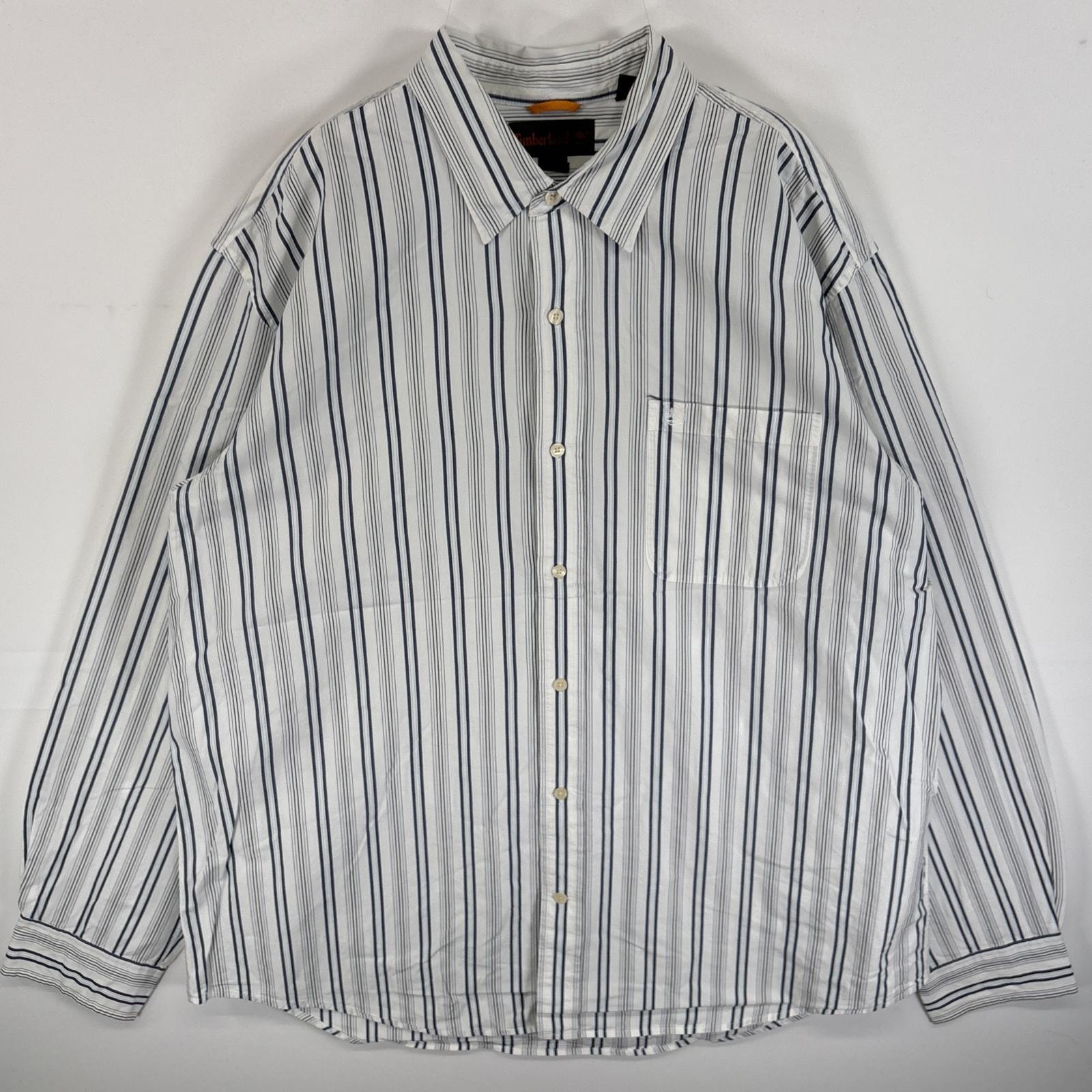 古着 ティンバーランド Timberland 長袖シャツ ワンポイント ロゴ 刺繍 大きいサイズ 胸ポケ 14041 ホワイト系 ストライプ メンズ