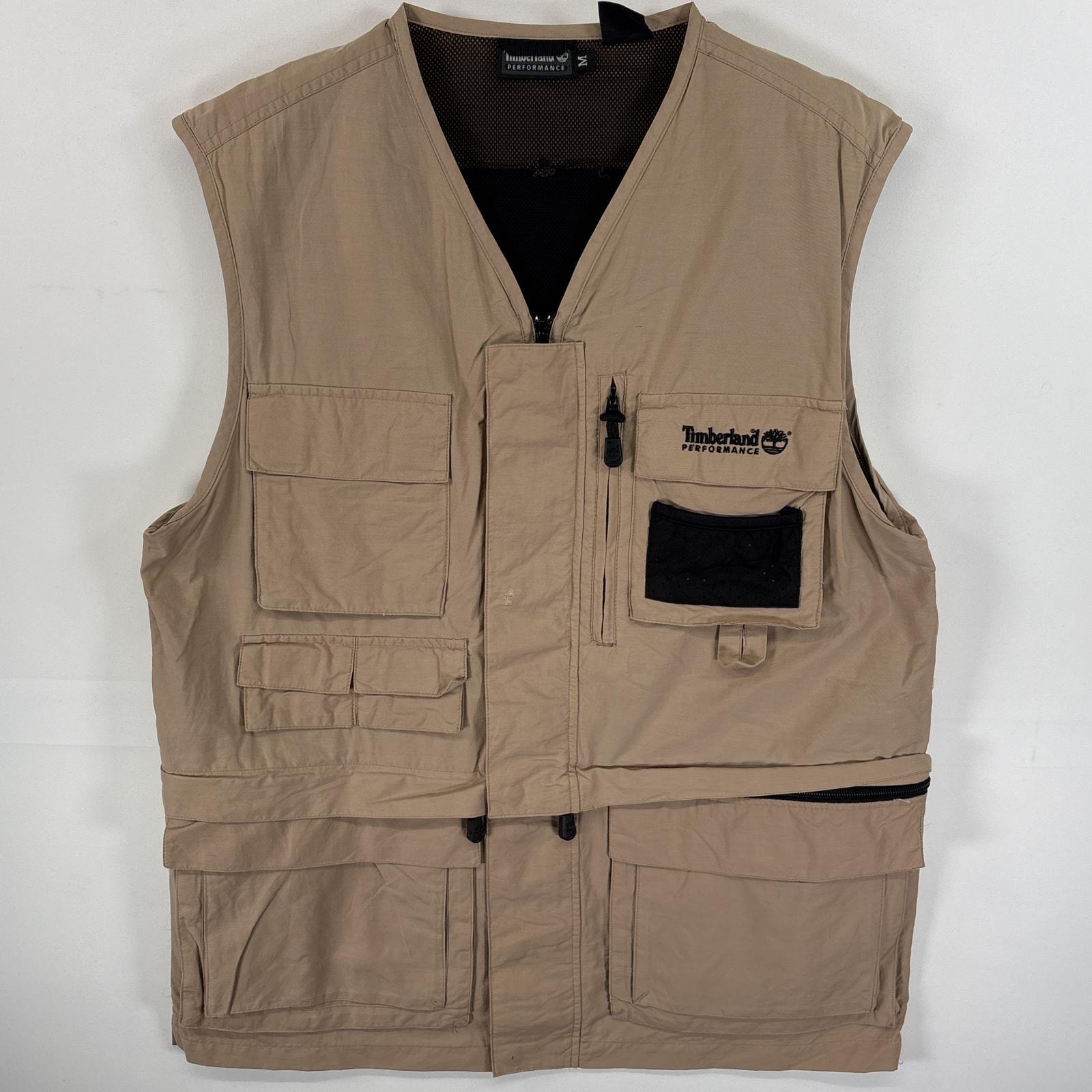 古着 ティンバーランド Timberland ベスト フィッシングベスト フラップポケ ワンポイント ロゴ 刺繍 M ベージュ 無地 メンズ