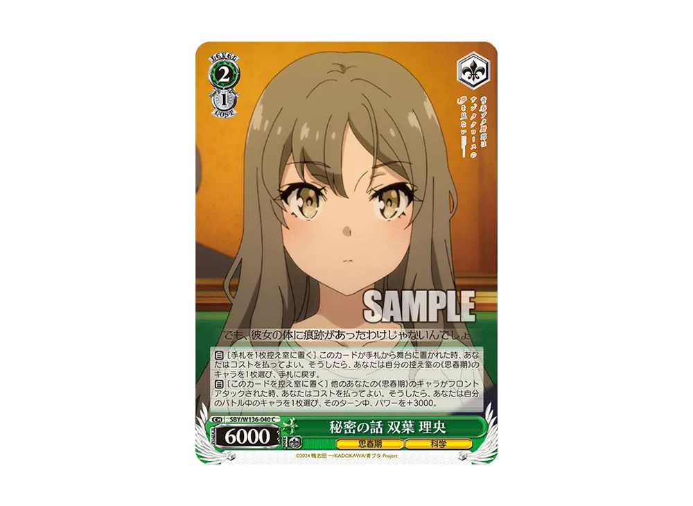 秘密の話 双葉 理央 SR [SBY/W136-040S](ブースターパック「青春ブタ野郎はサンタクロースの夢を見ない」)