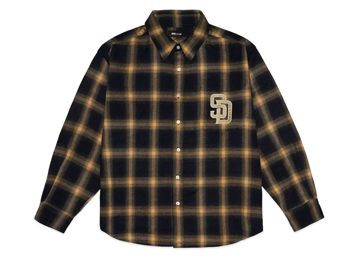 WIND AND SEA x MLB San Diego Padres Check Shirt "Navy Yellow"