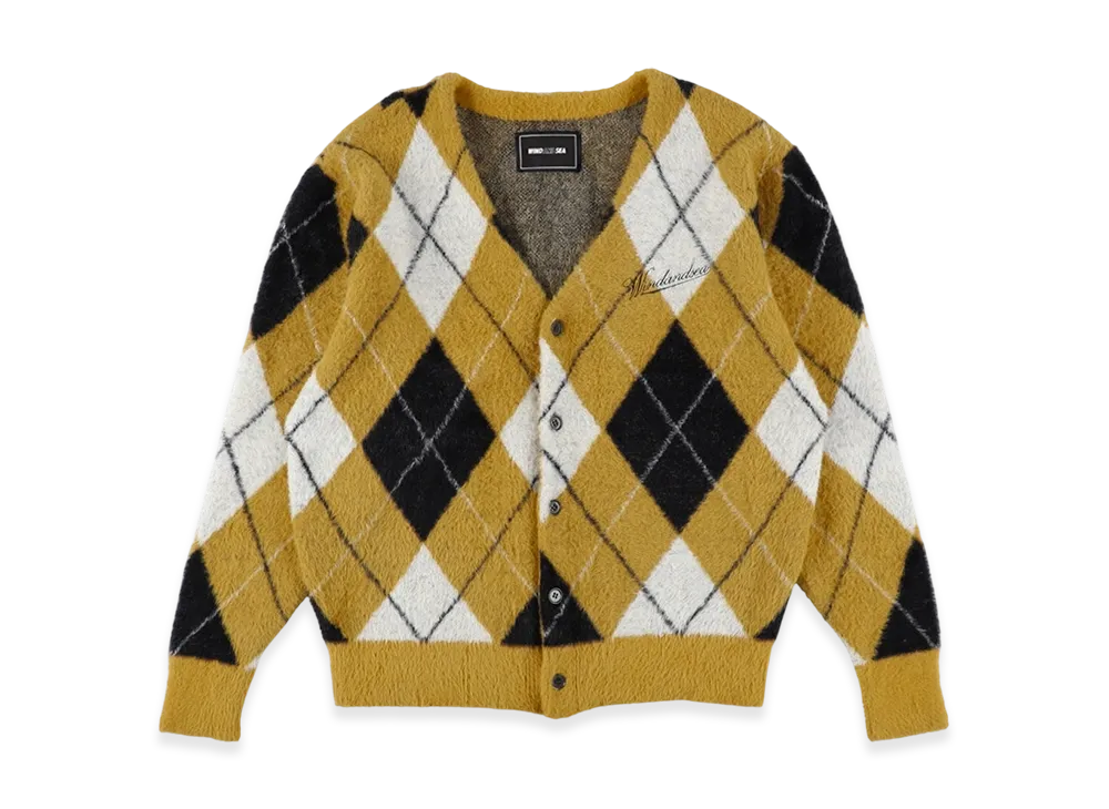 WIND AND SEA Shaggy Knit Cardigan "Yellow/Argyle"