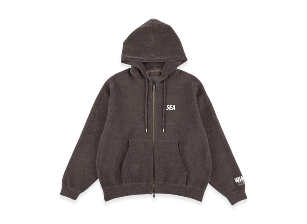 WIND AND SEA Mole Knit Zip Up Hooded Sweatshirt "Brown"