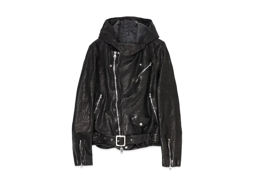Yohji Yamamoto POUR HOMME Backlash Japan Calf Hoodie Riders "Black" HO-Y99-704-2A24