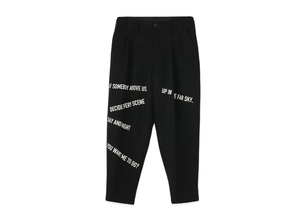 Yohji Yamamoto Pour Homme MESSAGE PRINT ARMY GABARDINE 2 TUCK PANTS "Black"