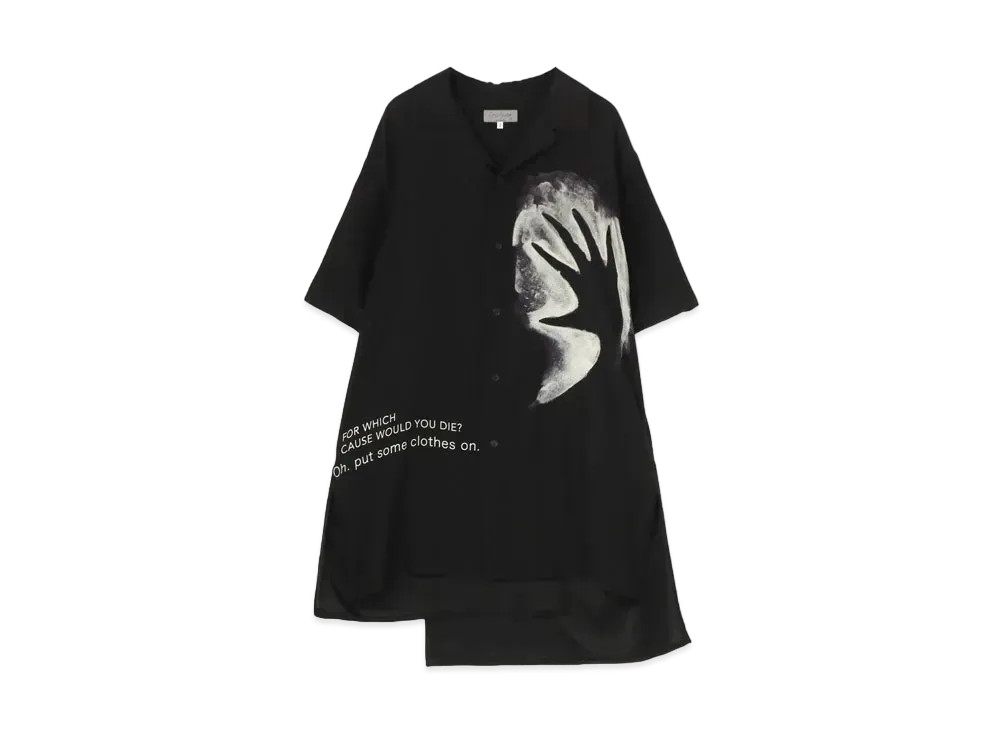 Yohji Yamamoto Pour Homme SILK SATIN HAND PATTERN PRINT ALOHA SHIRT "Black"