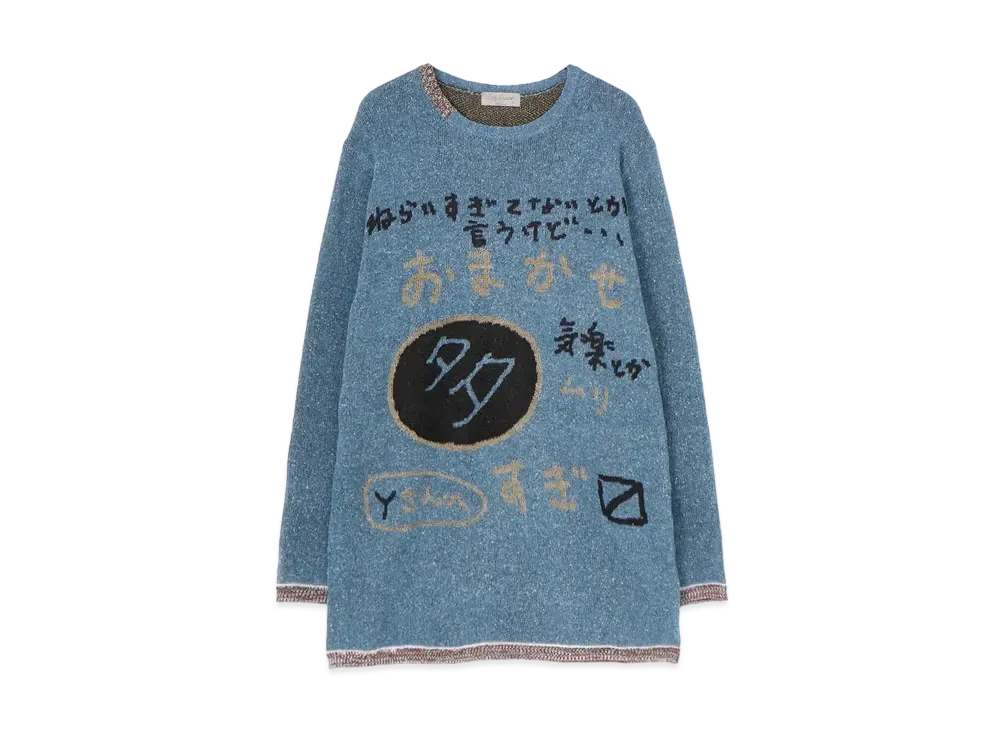 Yohji Yamamoto Pour Homme 7G MESSAGE JACQUARD LEAVE IT UP LONG SLEEVES "Blue"