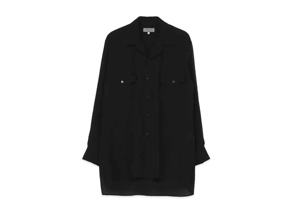 Yohji Yamamoto Pour Homme CELLULOSE LAWN OPEN COLLAR GUN SLEEVES BLOUSE "Black"