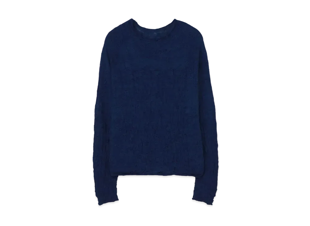 Yohji Yamamoto Y's WOOL SILK GAUZE PLAIN STITCH ROUND NECK LONG SLEEVE T "Blue"
