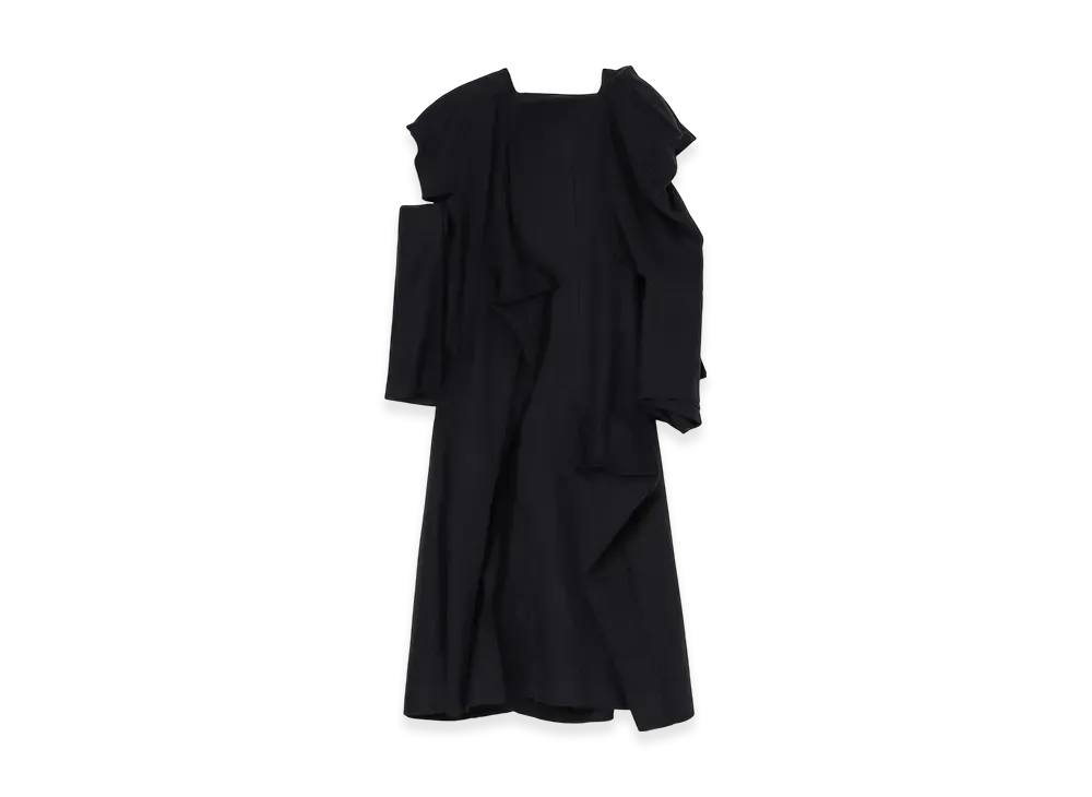 Yohji Yamamoto Combed Jersey Pigmented Pt Print Detail Dress "Black"