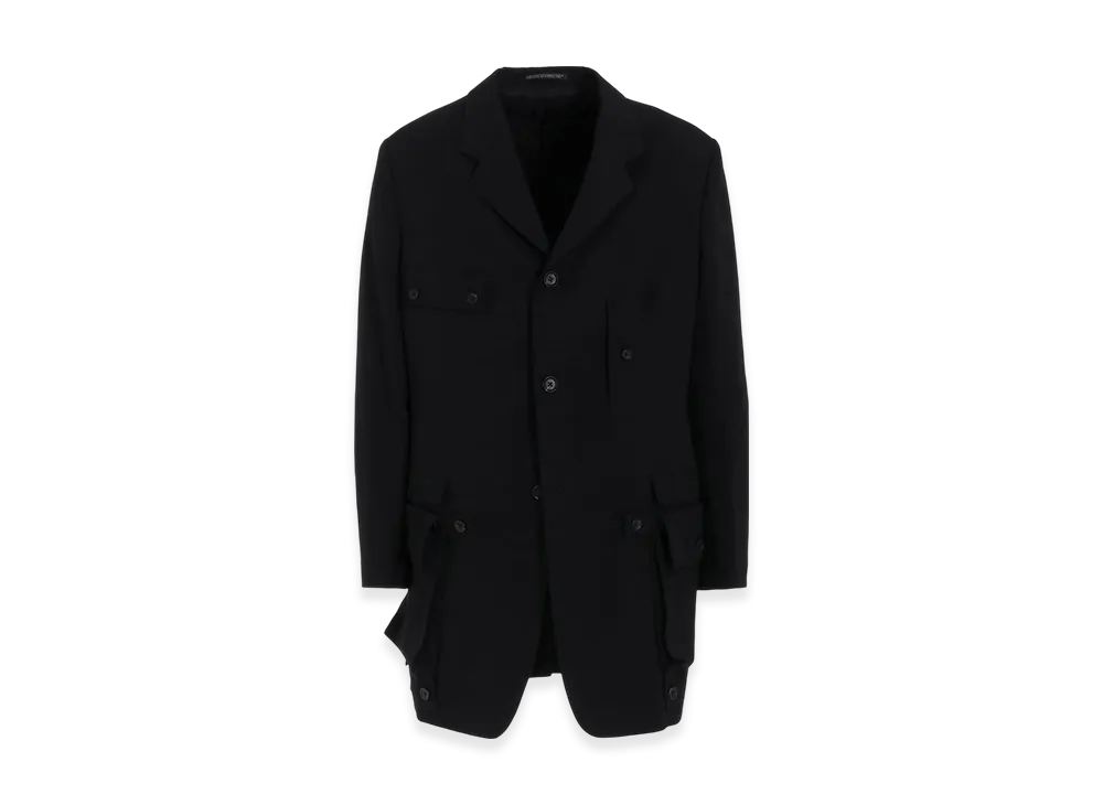 Yohji Yamamoto POUR HOMME Wool Gabardine Sleeve Button Detachable Pocket Jacket "Black"