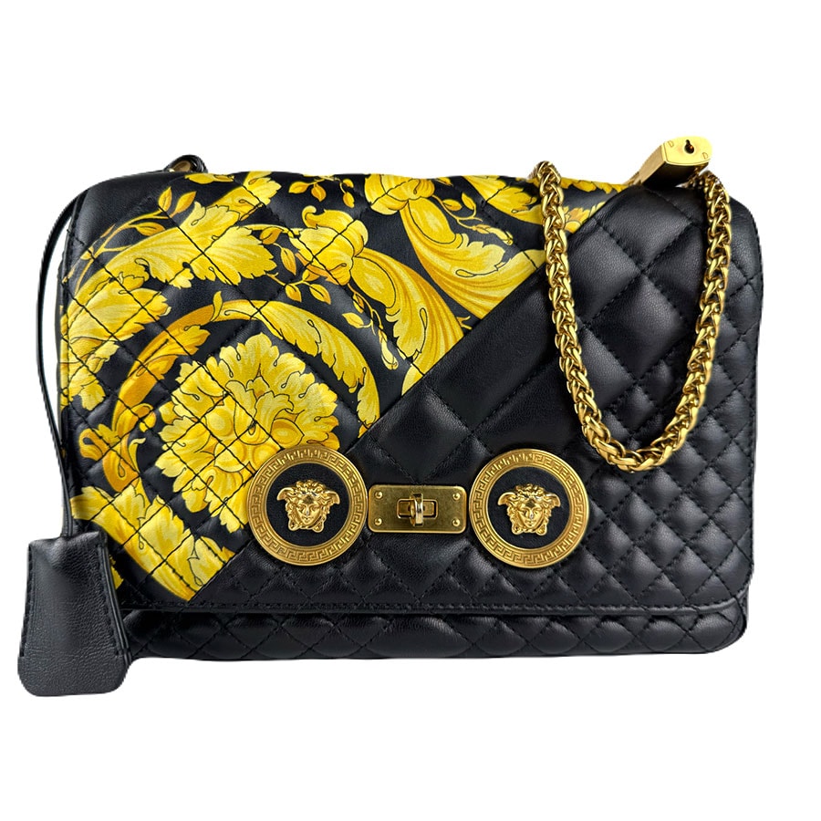 ヴェルサーチ VERSACE ショルダーバッグ レザー ブラック×イエロー レディース【中古】 z8949