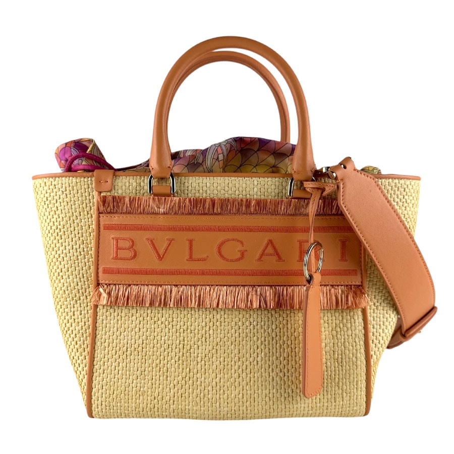 ブルガリ BVLGARI ハンドバッグ ショルダーバッグ RESORT ラフィア ベージュ/オレンジ ゴールド レディース【中古】 z9375