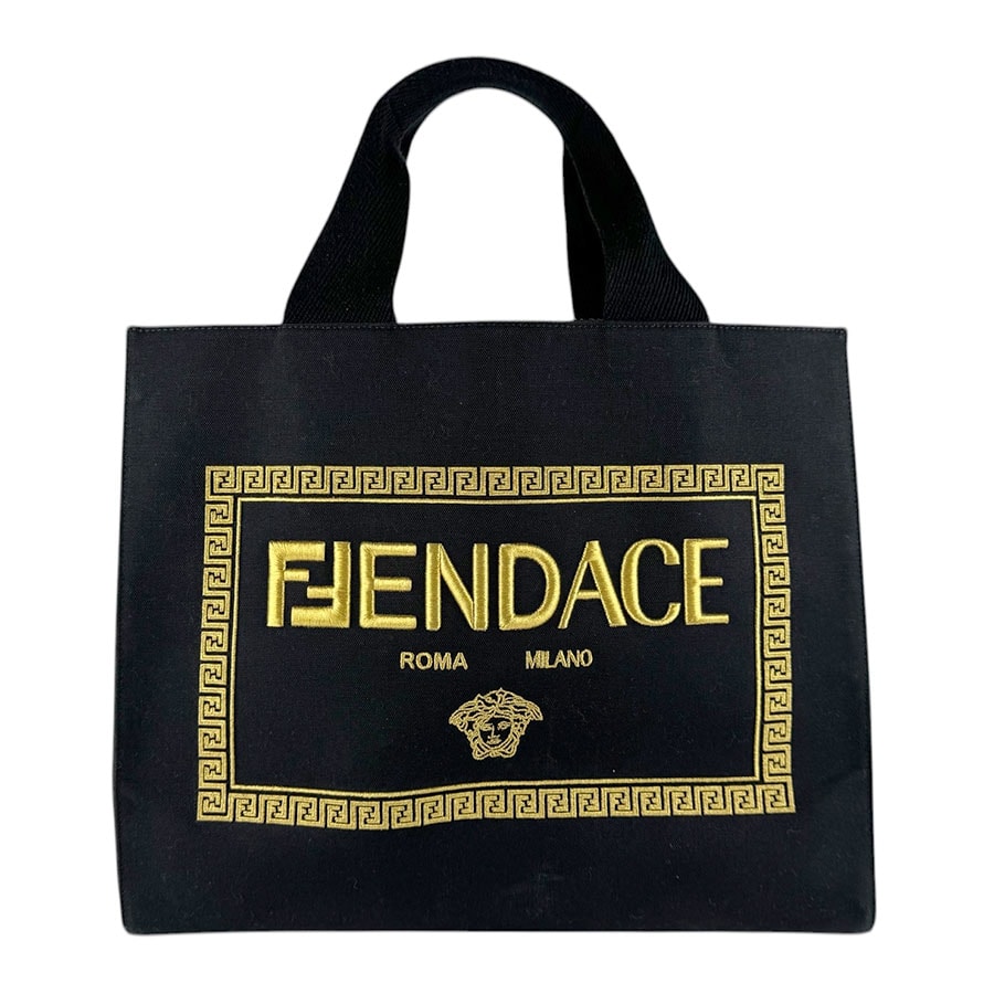 フェンディ FENDI ハンドバッグ ショルダーバッグ FENDI x VERSACE FENDACE キャンバス ブラック/ゴールド ゴールド ユニセックス 8BH395-AKYY【中古】 z9374