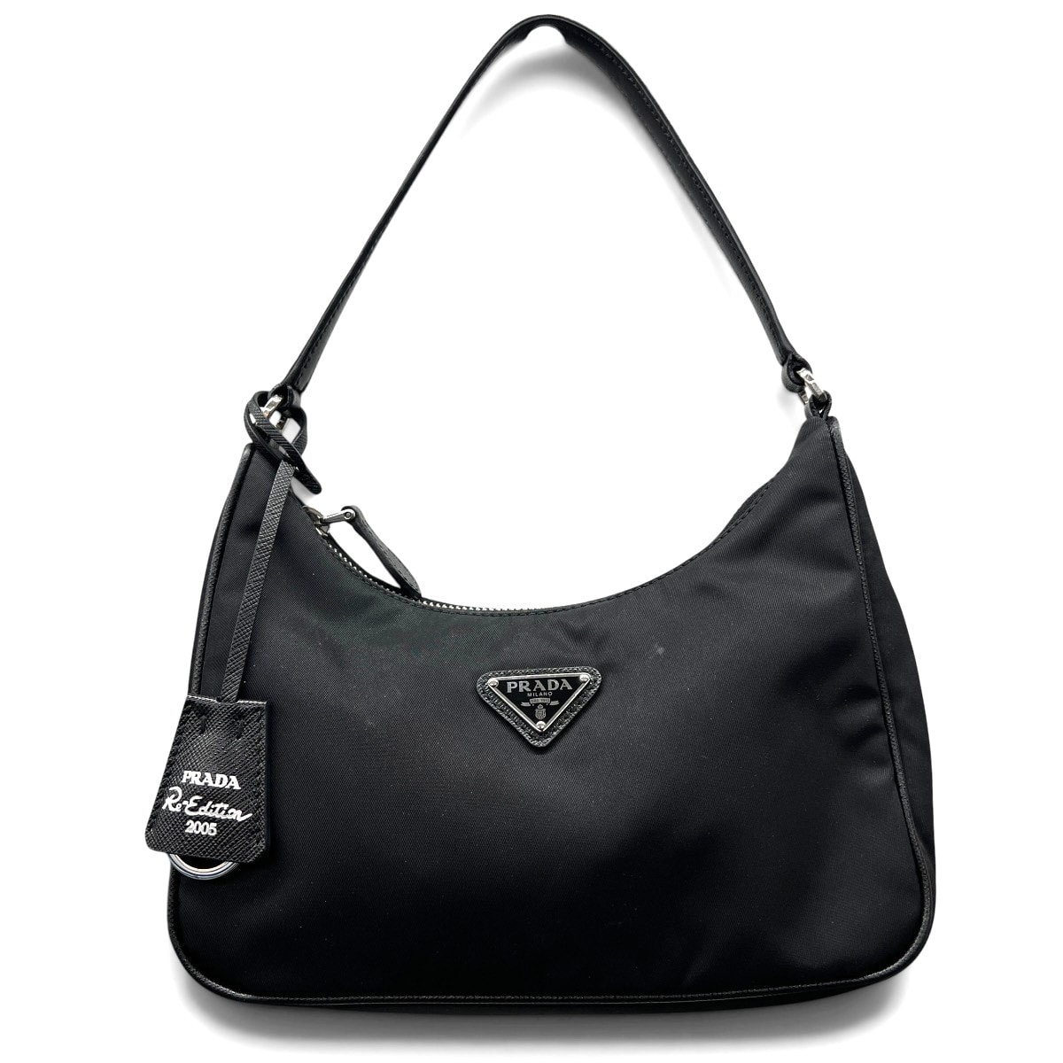 PRADA 美品 プラダ Re-Edition 2005 Re-Nylon ミニバッグ リエディション リナイロン ハンドバッグ 1N204X ナイロン ブラック トライアングルロゴ 三角プレート ロゴプレート 肩掛け ABランク 鑑定済 中古 プラダバッグ