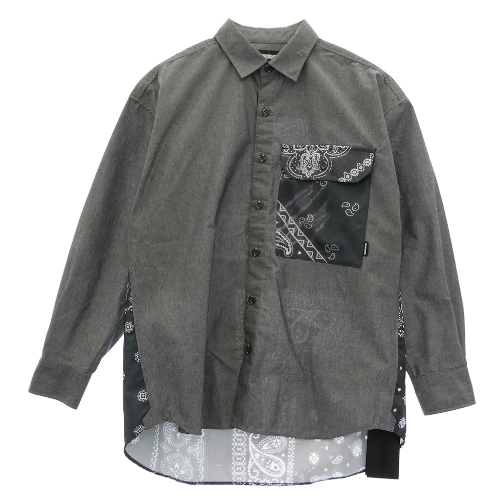 NEIGHBORHOOD ネイバーフッド 長袖シャツ 21AW 212TSNH-SHM05 BANDANA CHOPPED-2 CE-SHIRT バンダナ シャツ グレー系 S【美品】【中古】