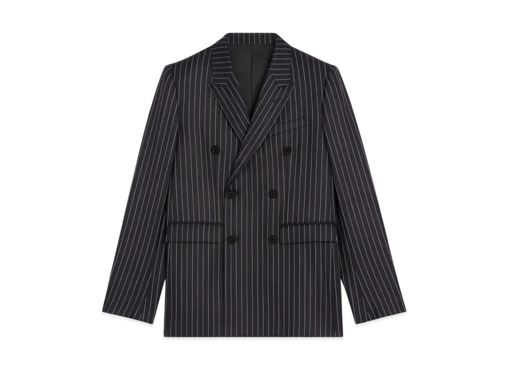 CELINE Men's Camden Jacket in Striped Wool Gabardine "Navy/Craie"