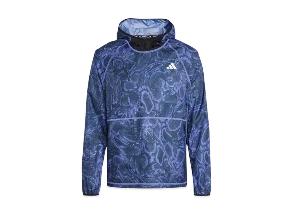 adidas Own The Run Excite Allover Print Aeroready Hoodie "Semi Cobalt Blue"