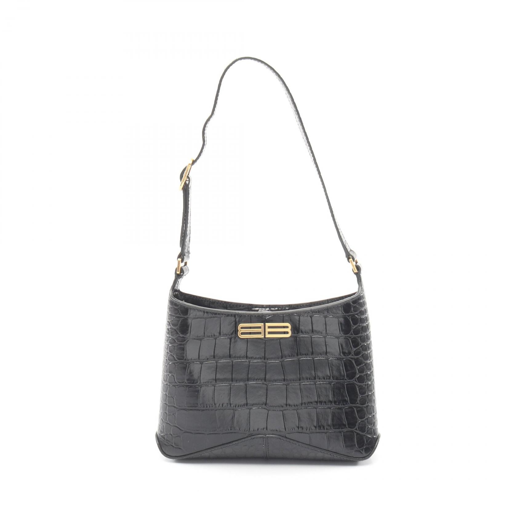 バレンシアガ BALENCIAGA XX スモール ホーボーバッグ クロコ型押し ショルダーバッグ バッグ レザー レディース ブラック系 695589 【中古】