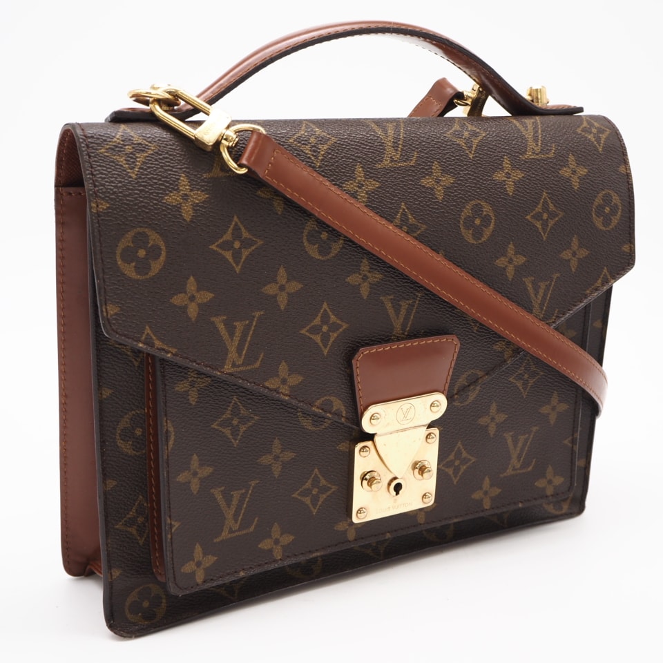 LOUIS VUITTON ルイ・ヴィトン モノグラム モンソー M51185 ハンドバッグ ブラウン コーティングキャンバス レザー レディース