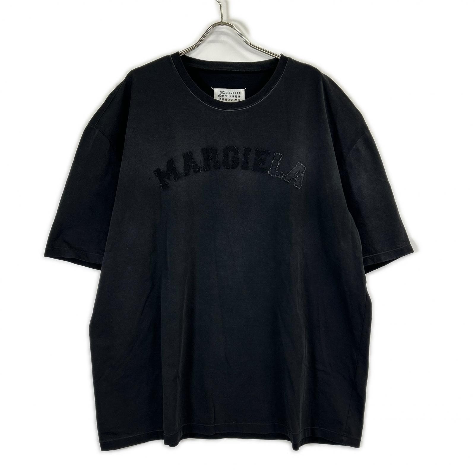 メゾンマルジェラ S50GC0685 ウォッシュブラック オーバーサイズ オーバーダイ ロゴTシャツ L