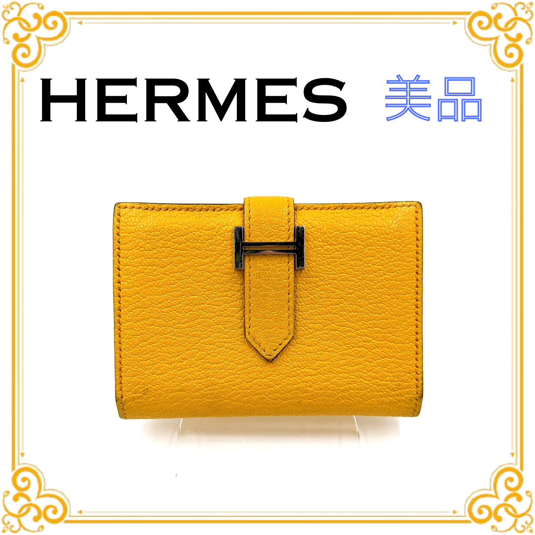 ■美品■ HERMES エルメス ベアンミニ カードケース シェブルミゾル イエロー 黄色 レザー レディース 名刺入れ シルバー金具