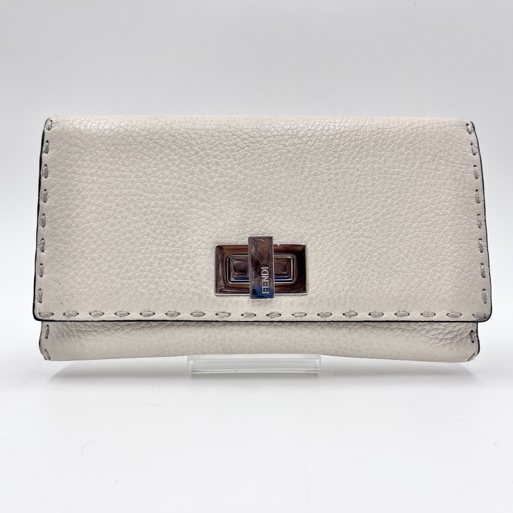 FENDI(フェンディ)ピーカブー コンチネンタルウォレット ヴィンテージ 長財布 二つ折り レザー ホワイト シルバー金具 レディース イタリア製【中古】