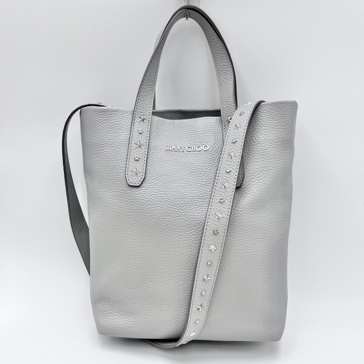 JIMMY CHOO(ジミーチュウ)ソフィア トートバッグ ショルダーバッグ スタースタッズ グレー レザー シルバー金具 2WAY レディース【中古】