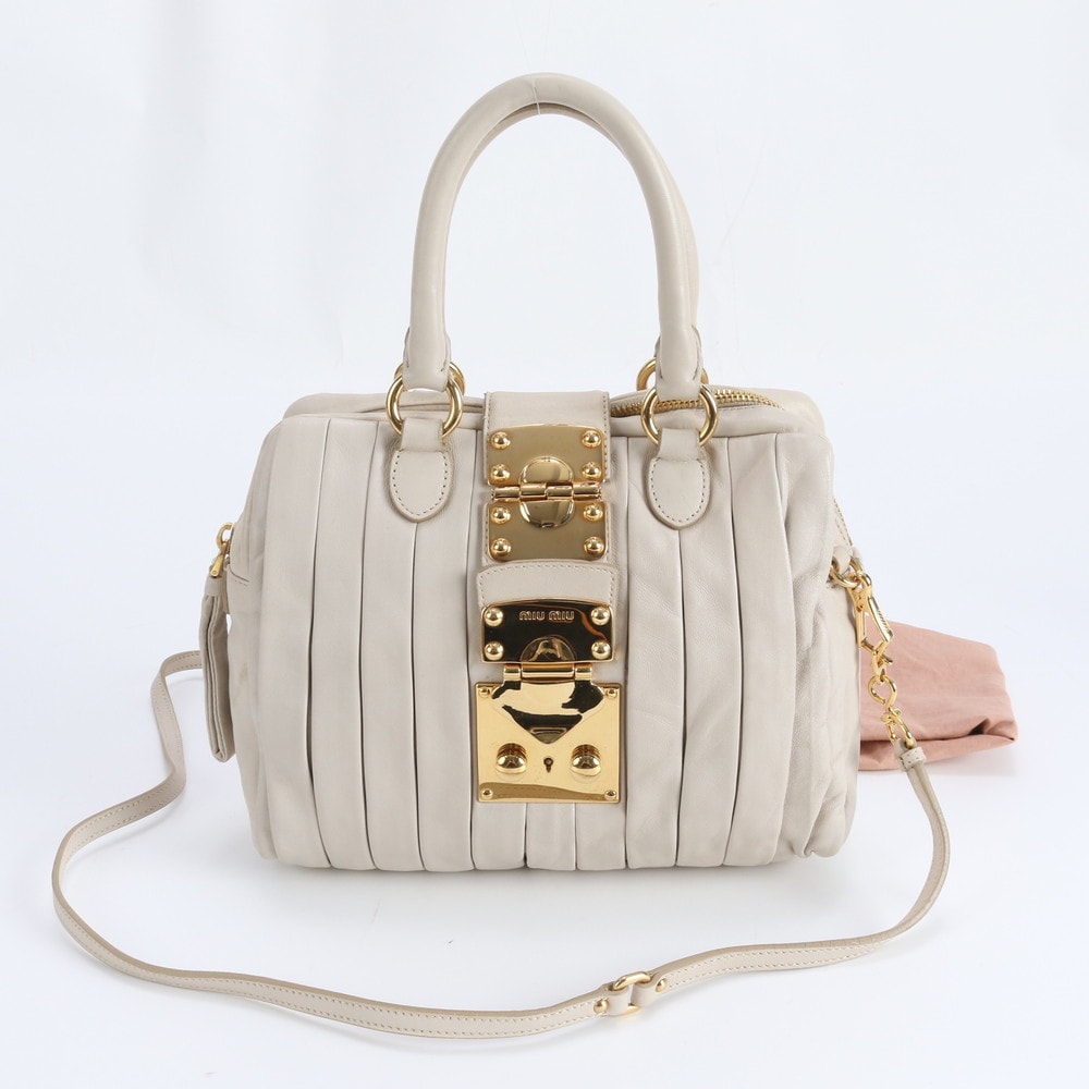■美品 ミュウミュウ ゴールド 金具ショルダーバッグ レザー