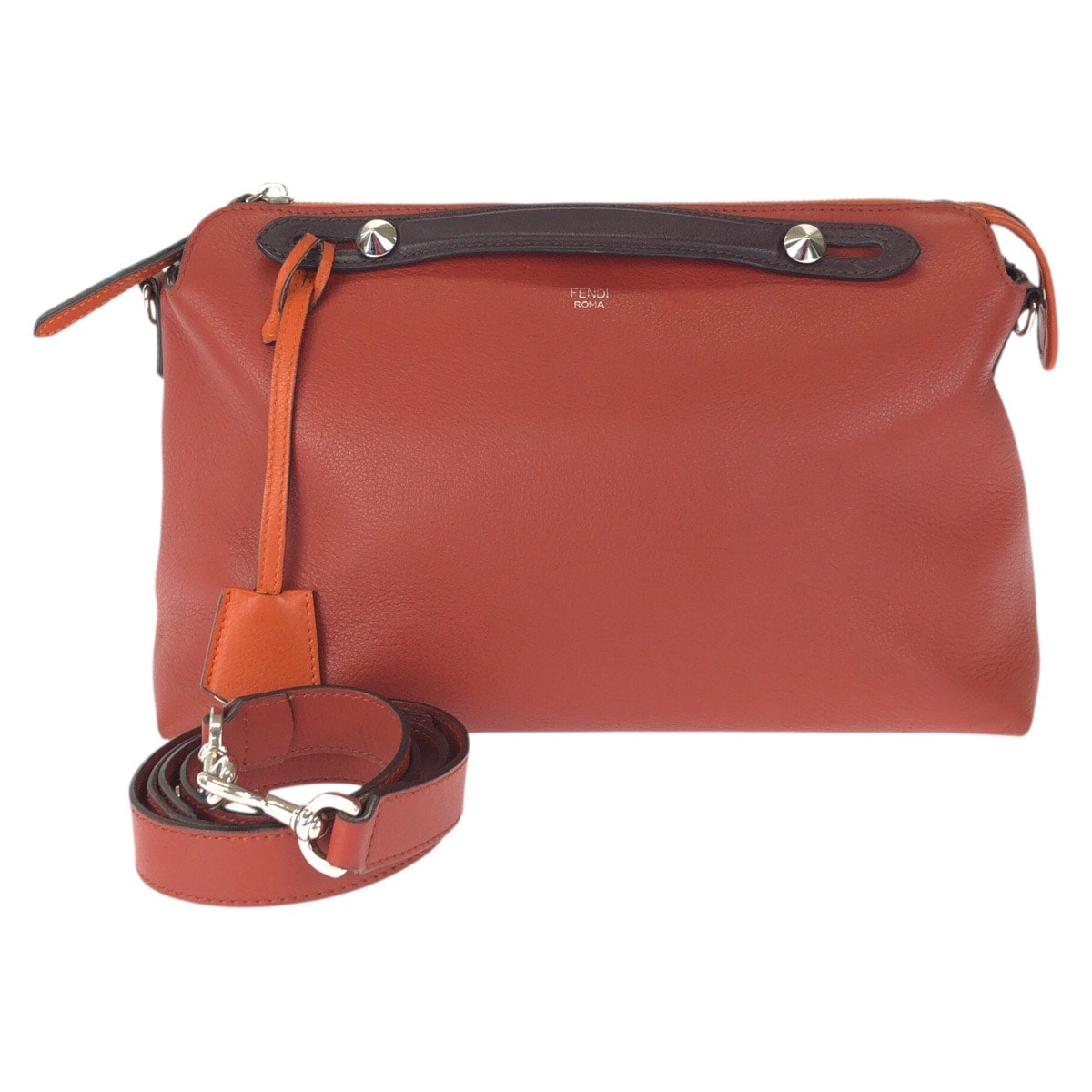 美品 FENDI フェンディ バイ ザ ウェイ 2way ラージ オレンジ ブラウン シルバー金具 レザー ショルダーバッグ ハンドバッグ 601545 【中古】