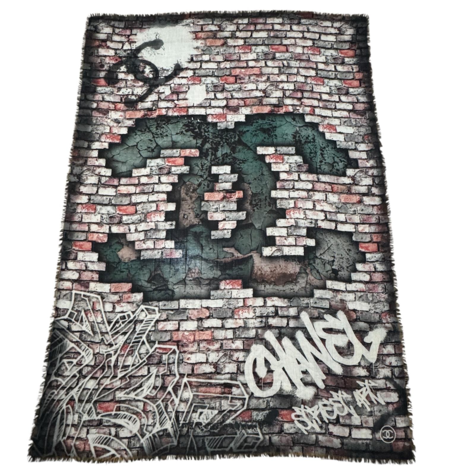 CHANEL シャネル ロゴ ストール レンガ柄 100% カシミヤ レディース