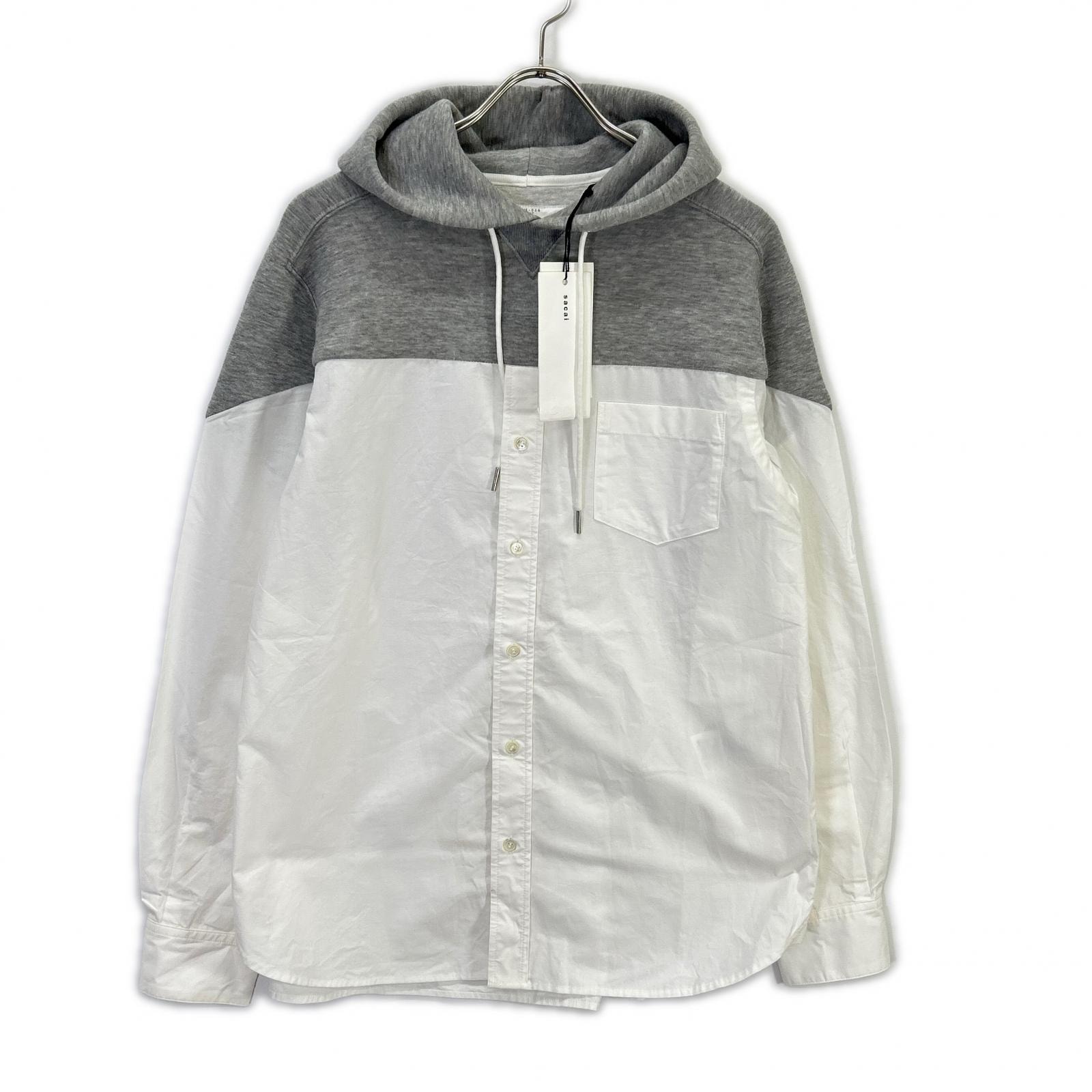 サカイ SCM-026 ホワイト×グレー ドッキング シャツ フーディ 1