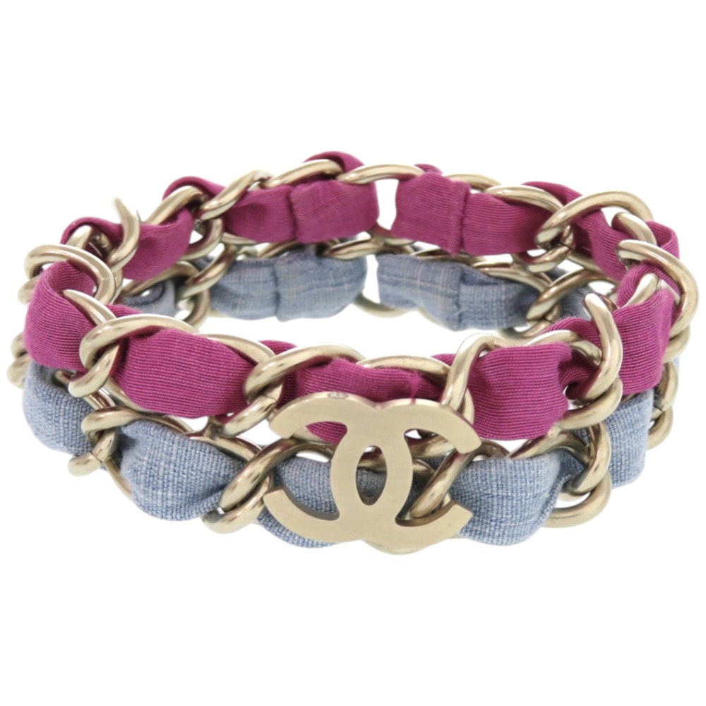 シャネル ココマーク 2連チェーン メタル ファブリック パー
