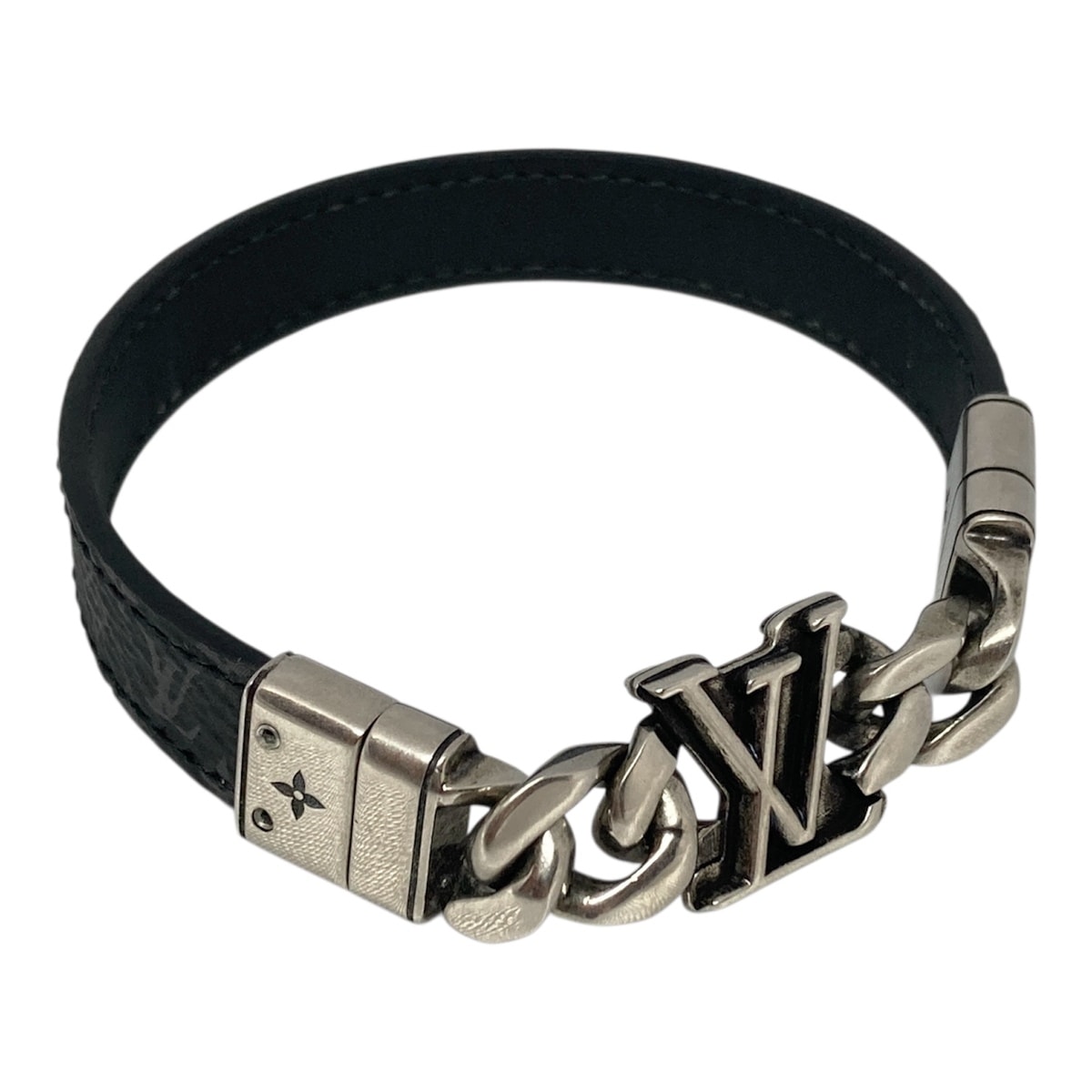 【値下げ】 LOUIS VUITTON ルイ・ヴィトン モノグラム リバーシブル ブレスレット・LV ディメンション M8828D レザー ブラック シルバー メンズ【中古】