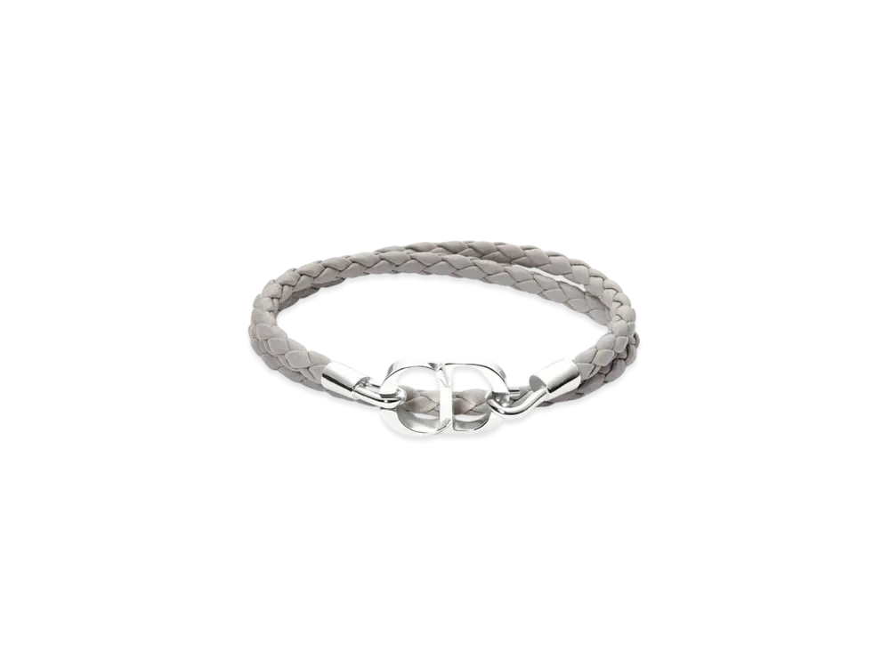 Dior CD Icon Braided Leather Double Bracelet Lambskin and Brass "Gray/Silver"