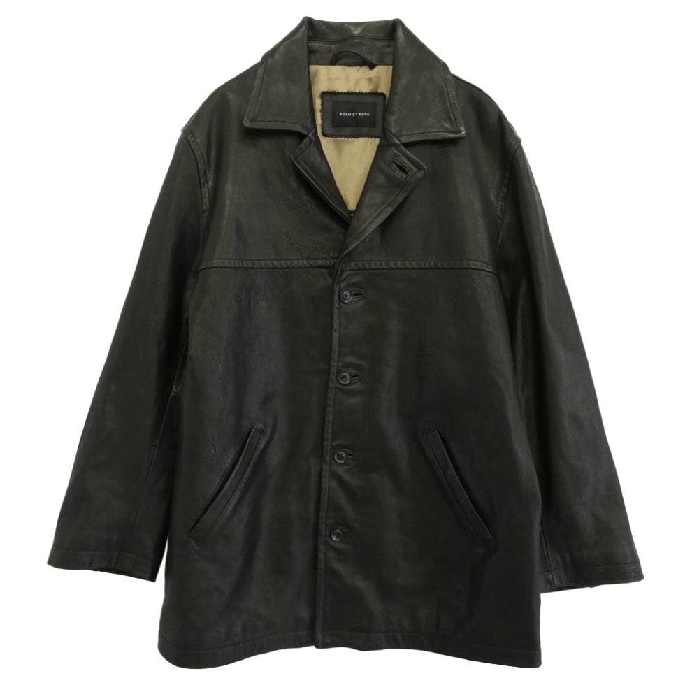 Adam et Rope' アダムエロペ ジャケット GML-15110-B シープスキン ウォッシュド レザー カーコート ジャケット ブラック系 L【中古】