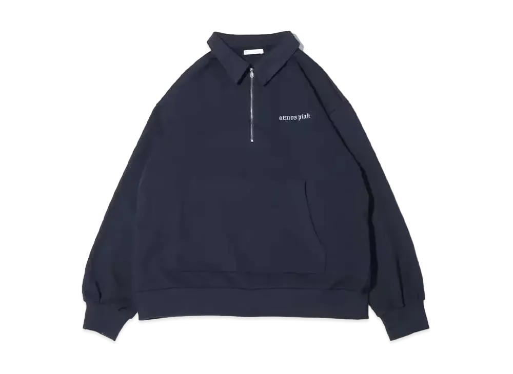 atmos pink Logo Embroidery Half Zip Tops "Navy"